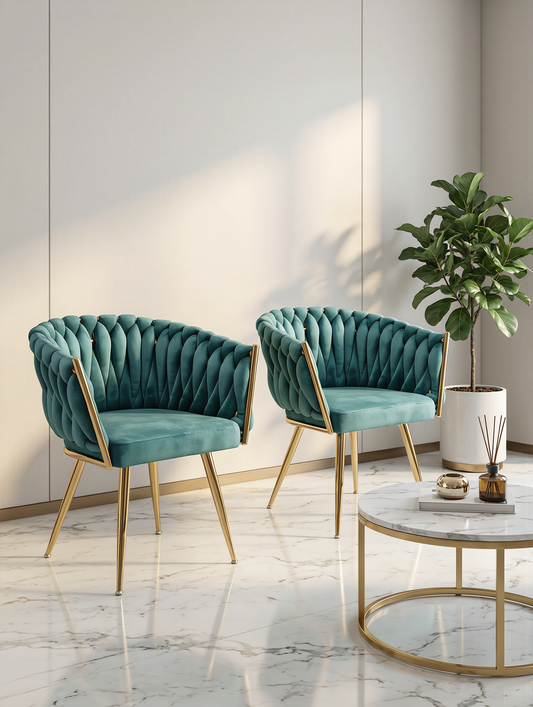 Coppia di poltroncine per sala da pranzo o sala d'attesa in velluto con gambe in ferro nere – dettaglio oro