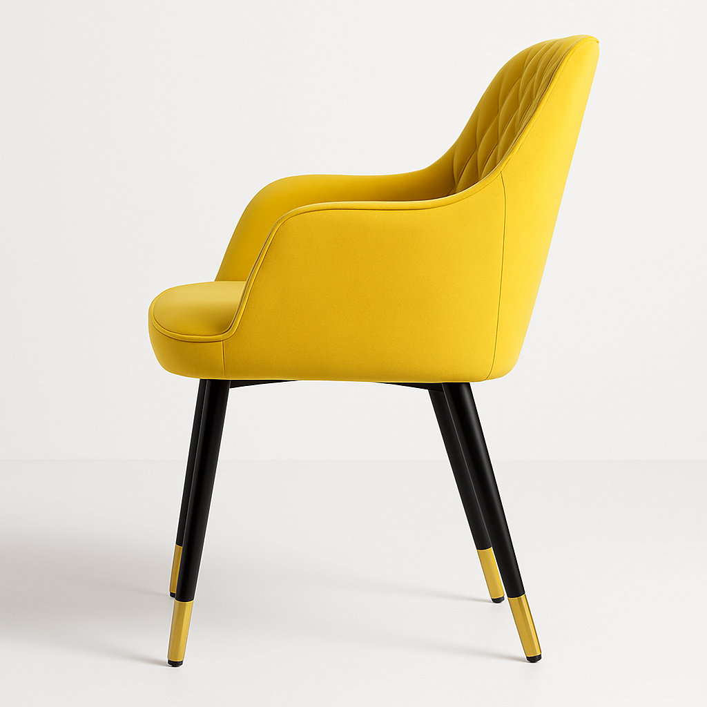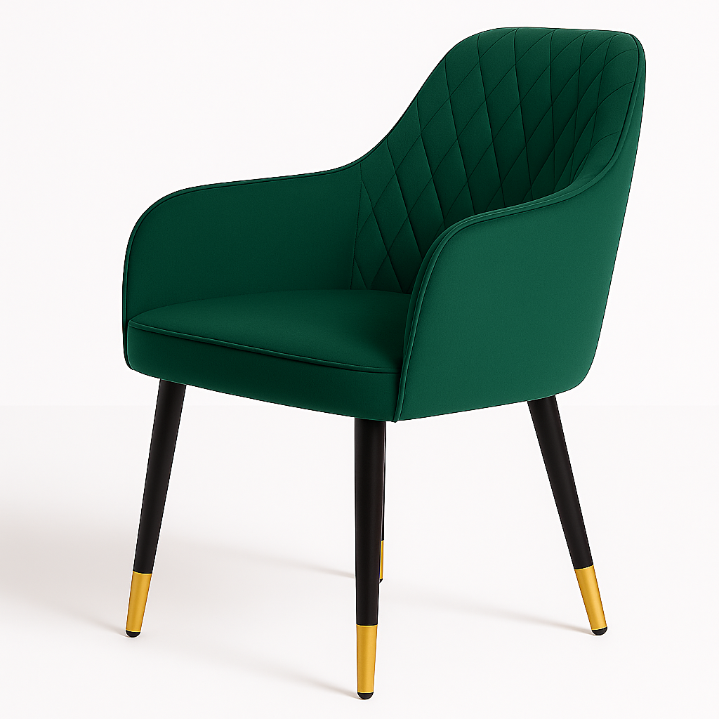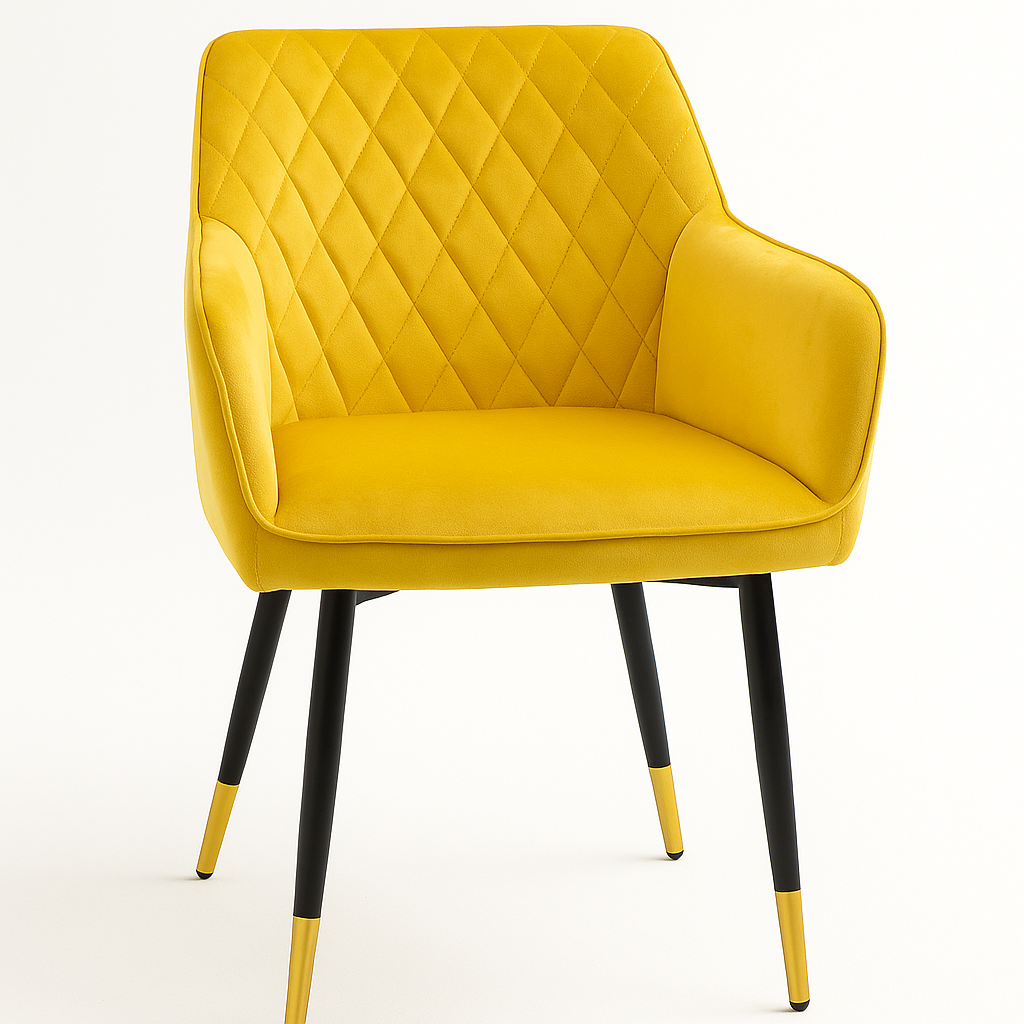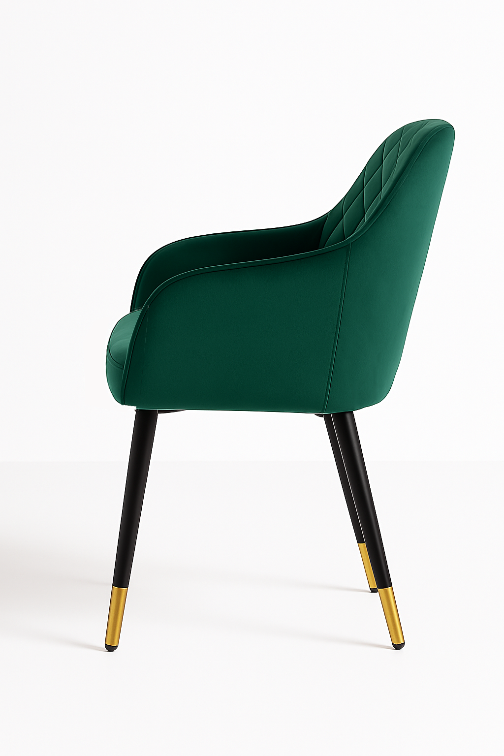 Coppia di poltroncine per sala da pranzo o sala d'attesa in velluto con gambe in ferro nere – dettaglio oro