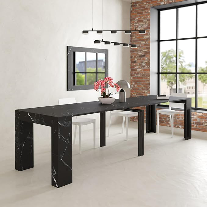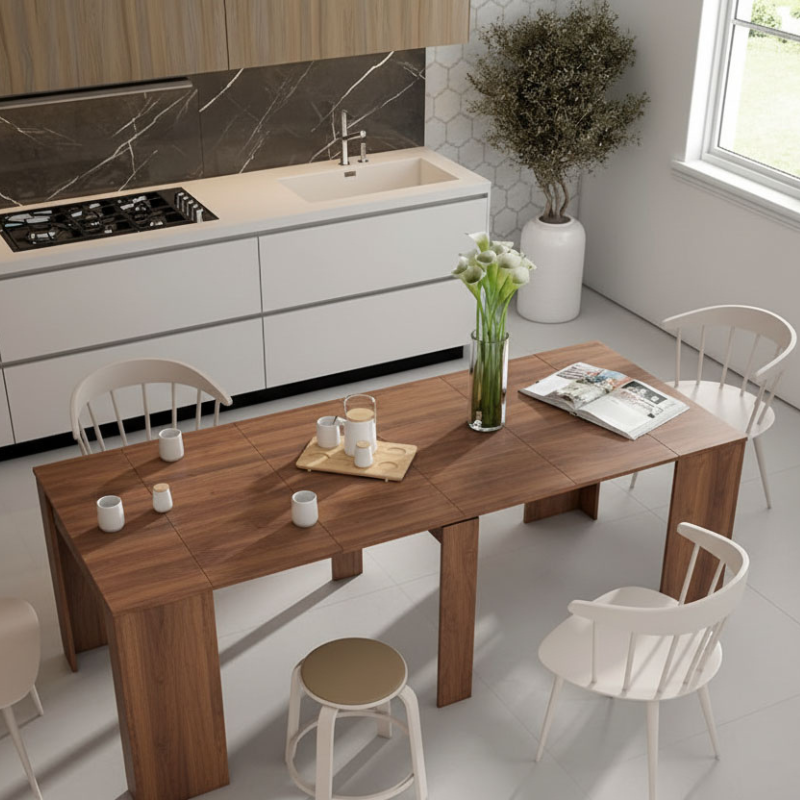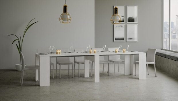- Dimensioni compatte: Partendo da una console di soli 50 cm di profondità, si estende fino a 3 metri di lunghezza. Perfetto per chi ha poco spazio ma vuole un tavolo grande all’occorrenza.