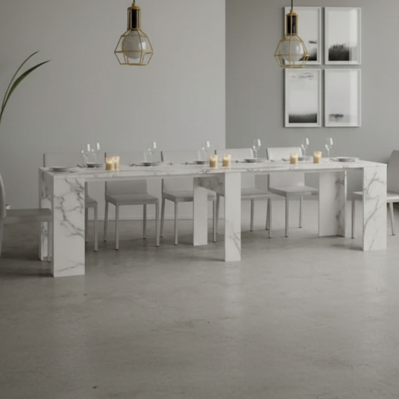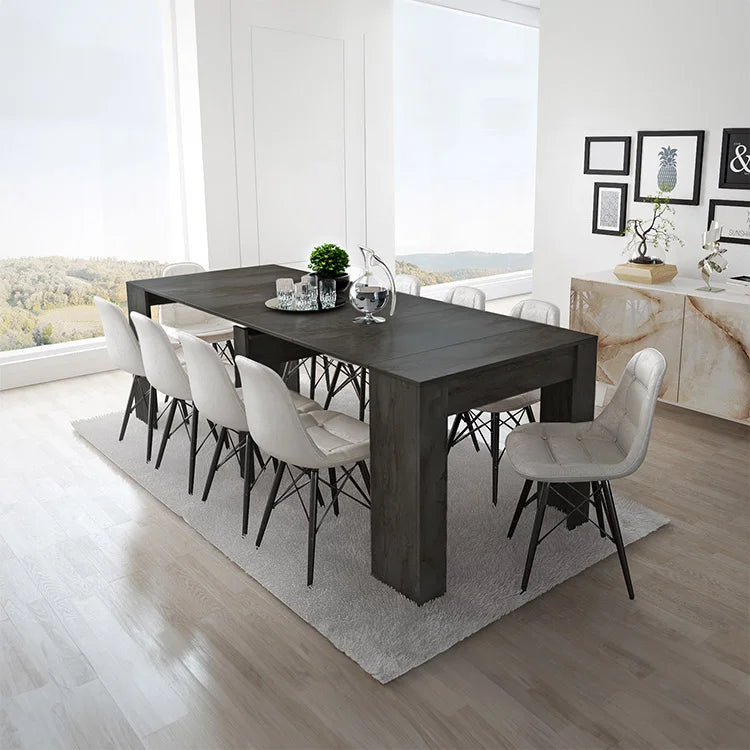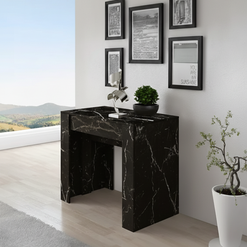 Scopri la versatilità del nostro tavolo console allungabile, una soluzione elegante e salvaspazio che unisce design moderno e funzionalità. Ideale per chi cerca un mobile compatto ma adatto ad ospitare fino a 12 persone, questo tavolo si adatta a ogni ambiente, dal soggiorno alla sala da pranzo.